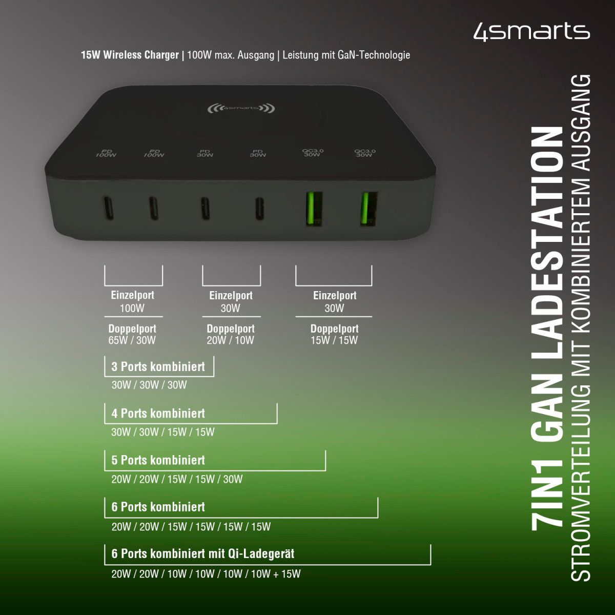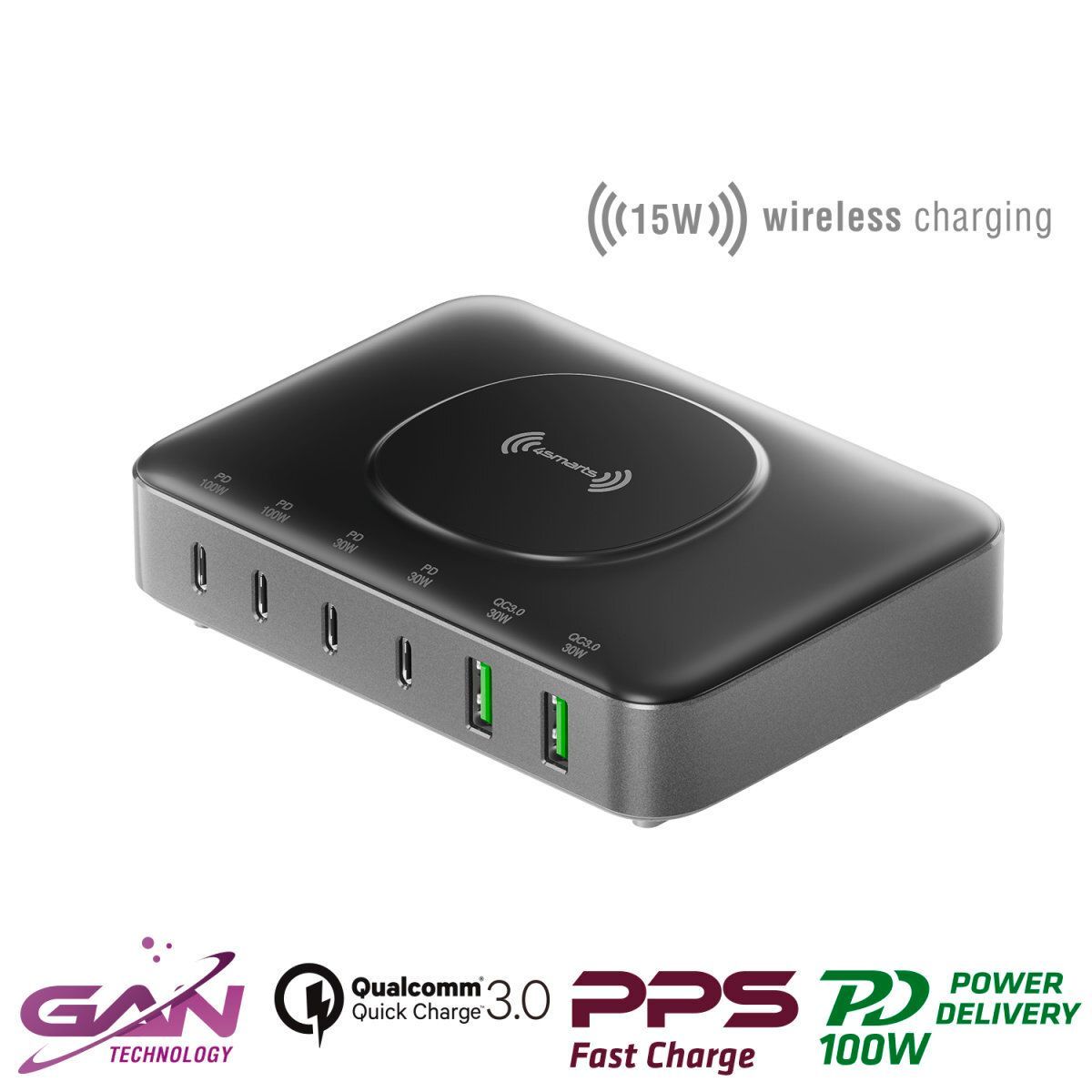 4smarts 7in1 GaN Ladestation 100W Wireless Charger, schwarz
