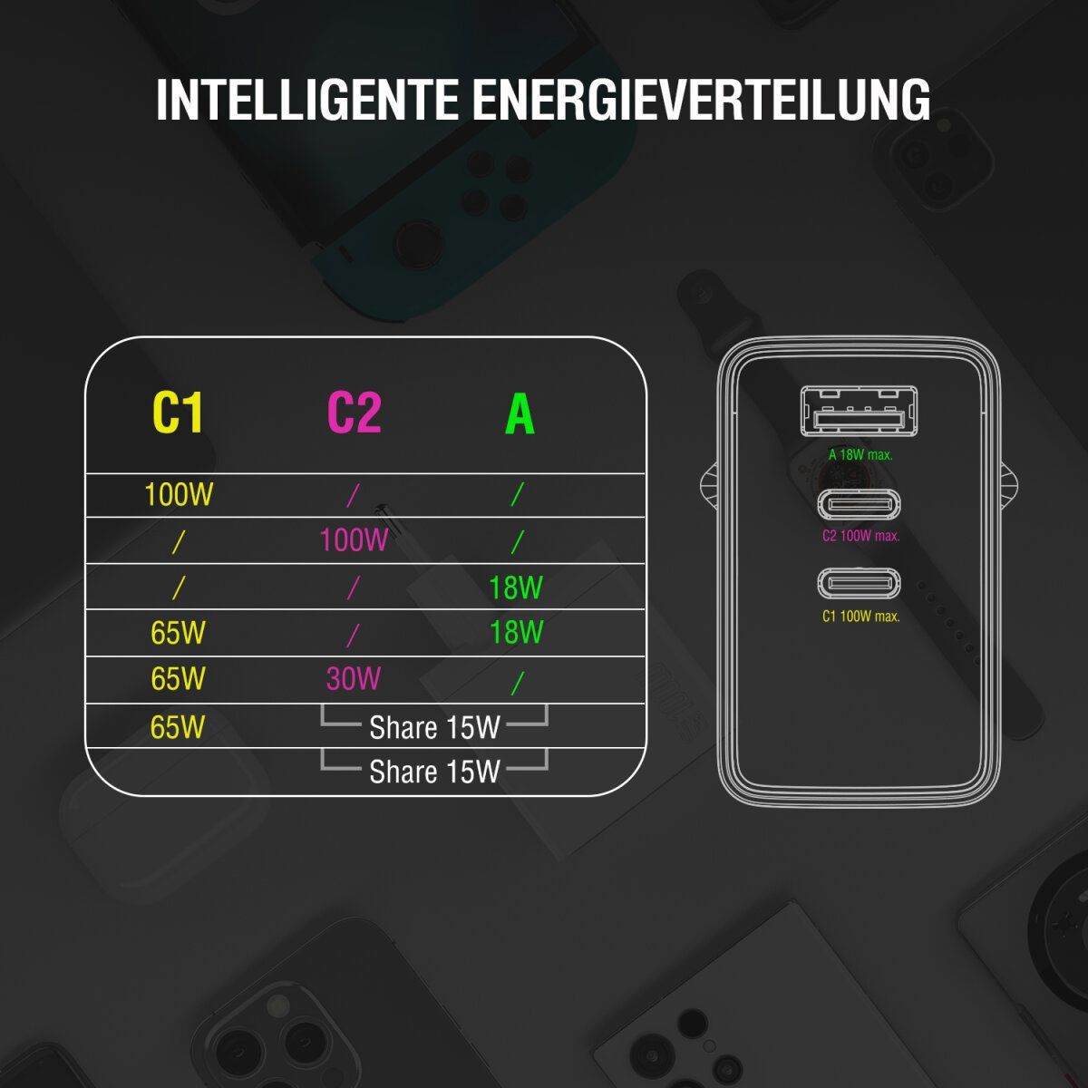 4smarts Netzladegerät GaN Pocket 100W 2C+1A, weiss
