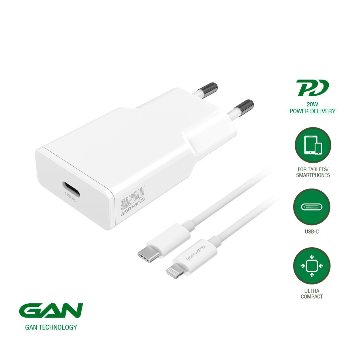 4smarts Set PDPlug Slim 20W GaN 1C + USB-C auf Lightning Kabel