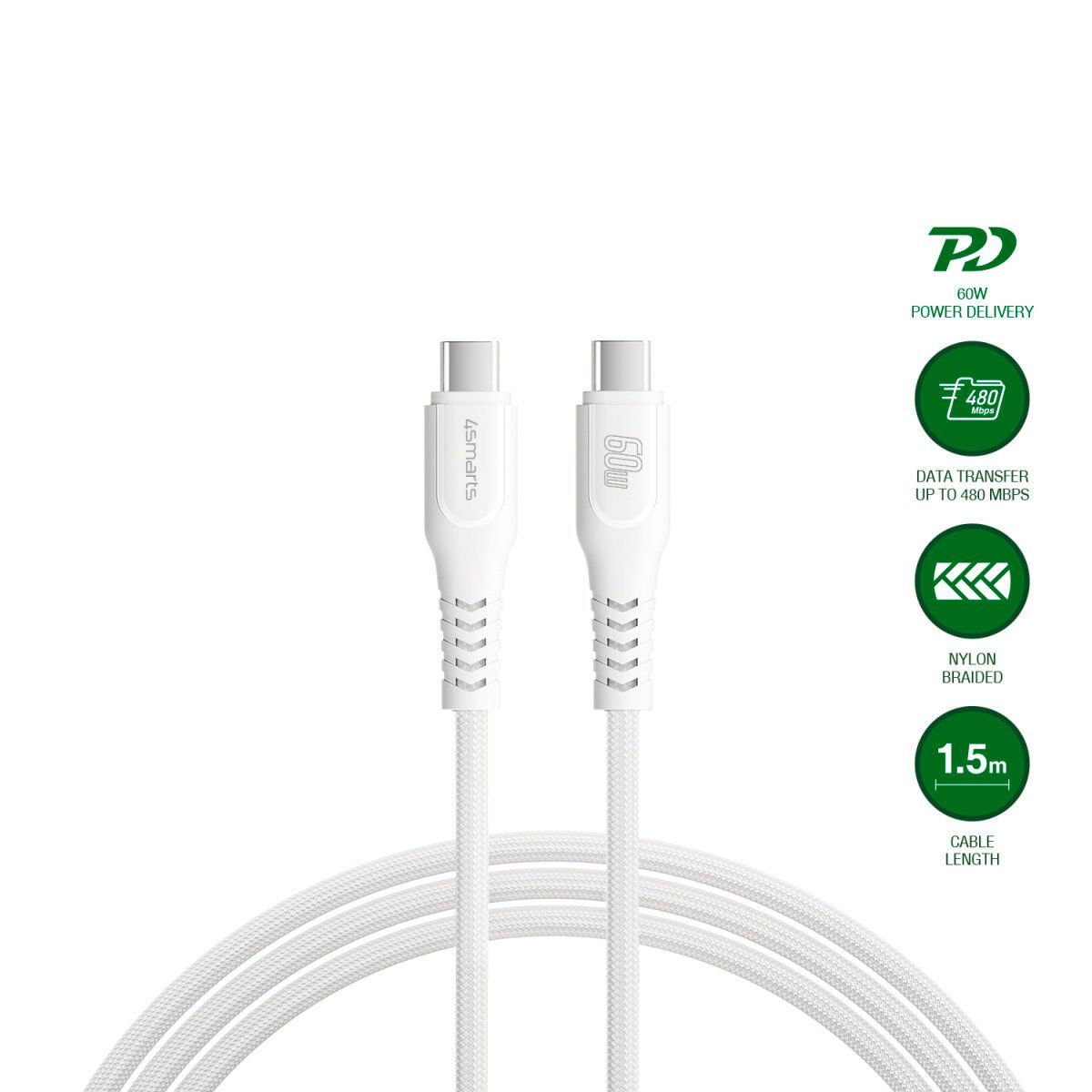 4smarts USB-C Kabel PremiumCord 60W 1,5m, weiß