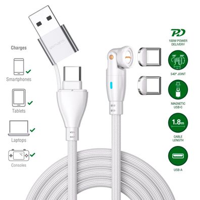 4smarts USB-C/A 540° Magnetkabel GravityCord 100W 1,8m weiß