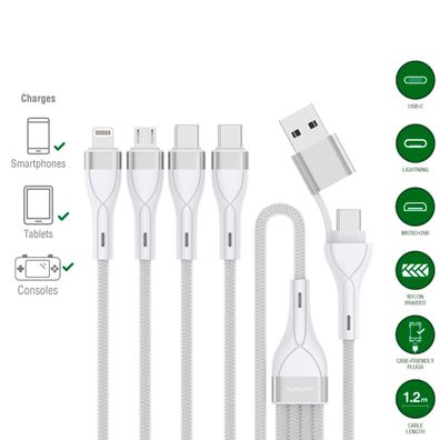 4smarts USB-C/A Multi-Ladekabel 4in2 1,2m, weiß