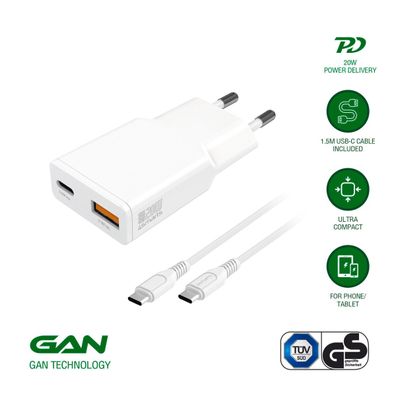 4smarts Ladegerät PDPlug Duos Slim 20W GaN USB-C/A+USB-C Kabel