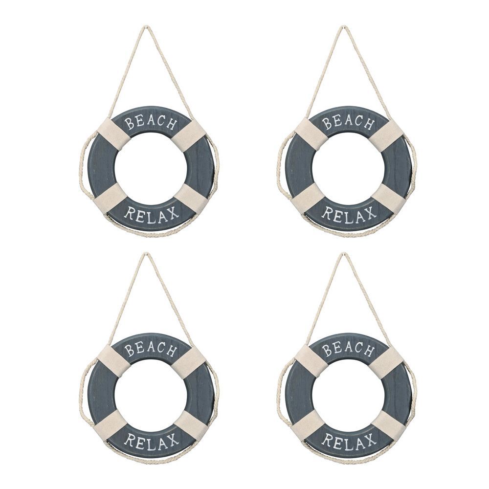 4tlg. Rettungsring BEACH blau weiß Holz D13cm Serviettenring maritim - Dunkelbla