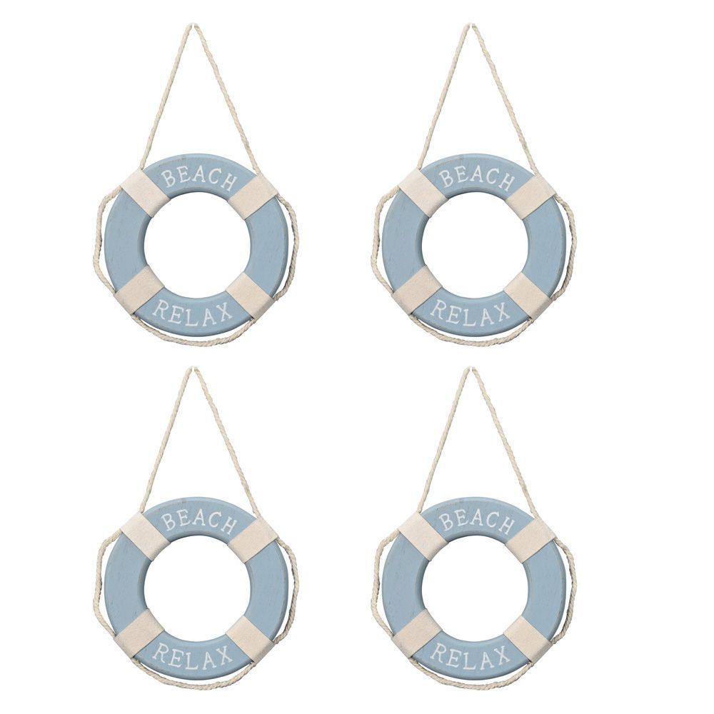 4tlg. Rettungsring BEACH blau weiß Holz D13cm Serviettenring maritim - Hellblau
