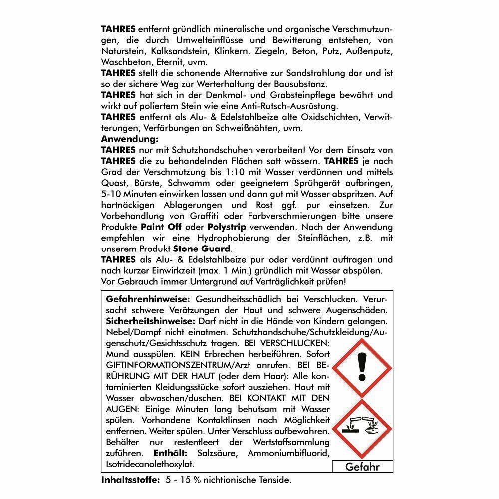 4x 1 L TAHRES Fassadenreiniger Steinreiniger Aluminiumbeize