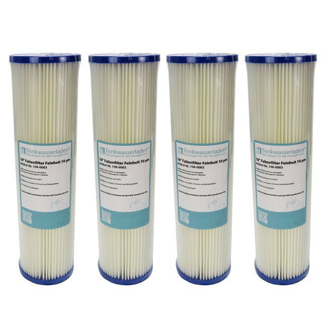 4x 10" Sediment Wasserfilter Pleated Polyester 10 µm Auswaschbar Wiederverwendbar