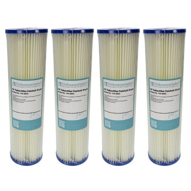 4x 10" Sediment Wasserfilter Pleated Polyester 20 µm Auswaschbar Wiederverwendbar
