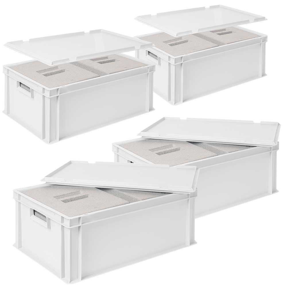 4x 2 Thermoboxen in Stapelkiste mit Deckel, LxBxH 600x400x220 mm, EPS, weiß