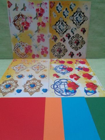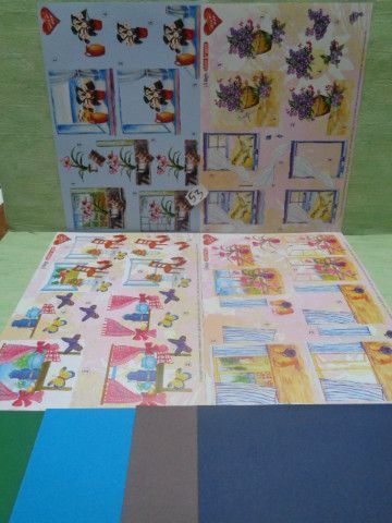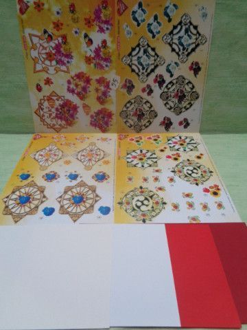 * * * * * * Hobby & Basteln * * * * * * Knipvellen - Stansvel - Die Cut Sheet - Feuille Pre Decoupage 4x Din A4 3D Bogen & 4x Din A5 Karten Bitte berücksichtigen Sie , daß die Farben Foto Original abweichen können - Danke !