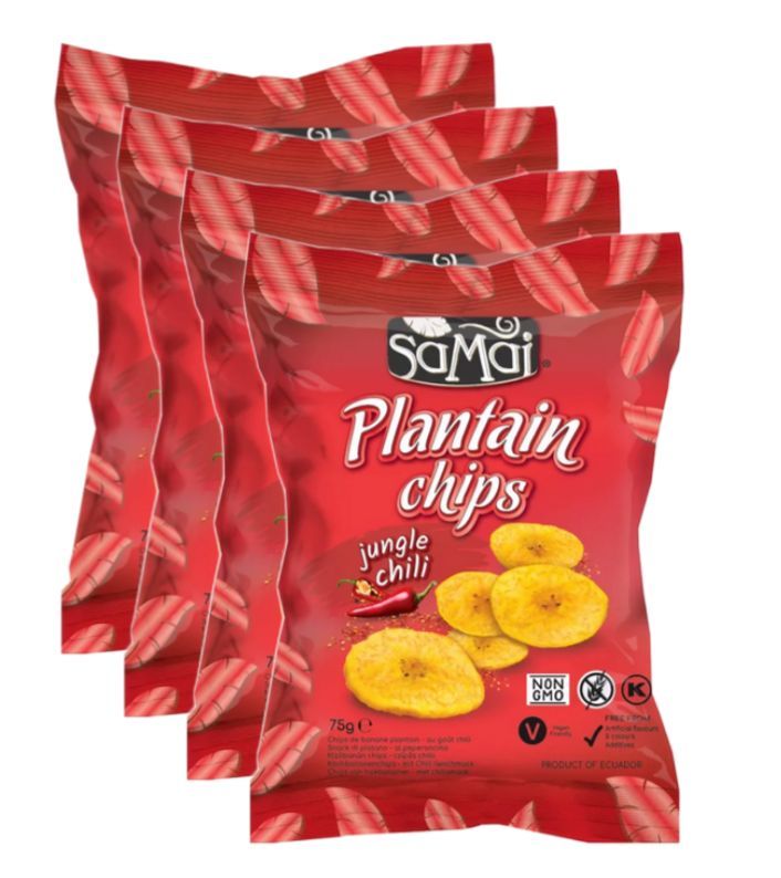 4x 75 g Plantain Kochbananenchips Chips leicht gesalzen Bananenchips mit Chili