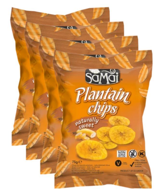 4x 75 g Plantain Kochbananenchips Chips natürlich süß Bananenchips glutenfrei