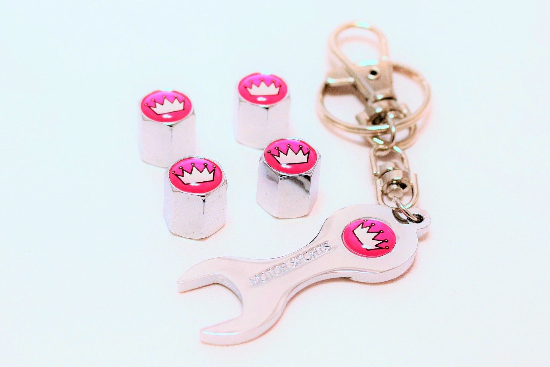 4x Auto Ventilkappe Ventilkappen Schlüsselanhänger Chrom Krone für alle KFZ PKW