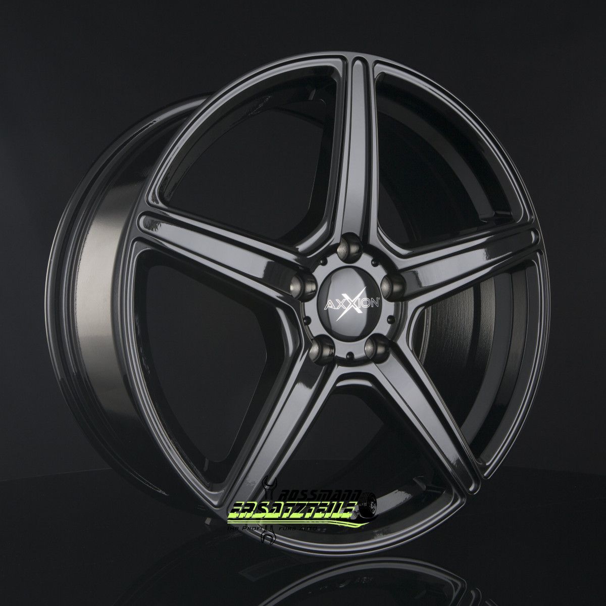 • 4x Axxion AX7 schwarz glänzend lackiert 9x19 ET35 - LK5/120 ML72.6 Felge Alu