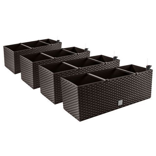 4x Balkonkasten Blumenkasten Rattan-Optik Pflanztopf Blumenkübel Braun PAFEN