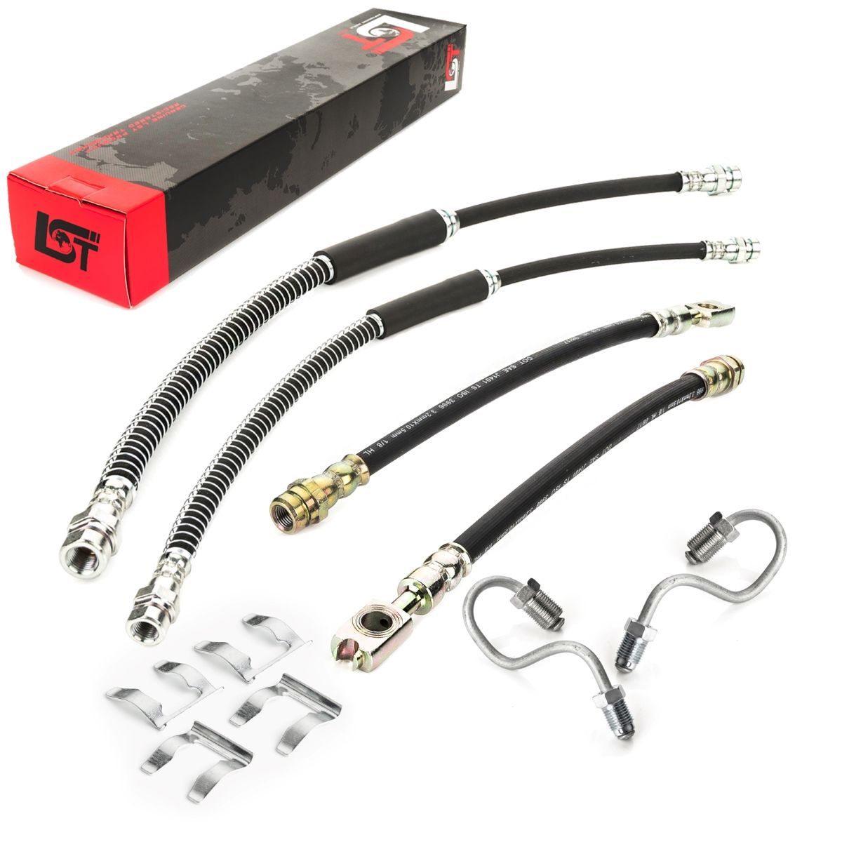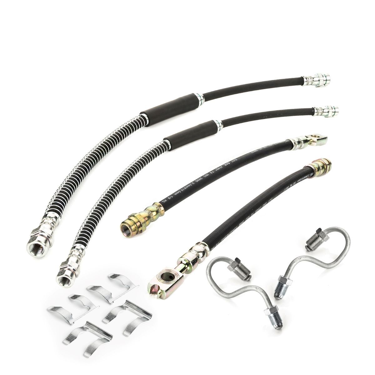 4x Bremsschlauch Set vorne hinten + Halteklammer für Audi A3 Seat Leon VW Golf
