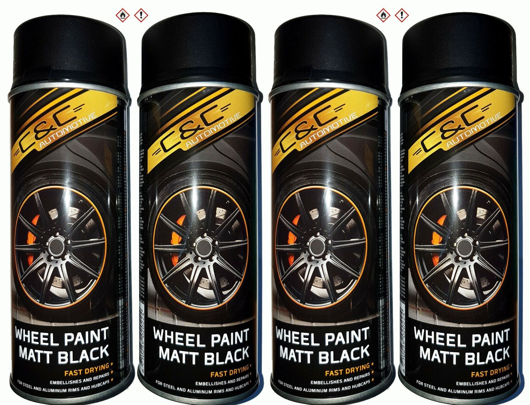4x C&C Reifenlack Matt Schwarz Lackspray Felgenspray Lack Stahlfelgen Tuning NEU