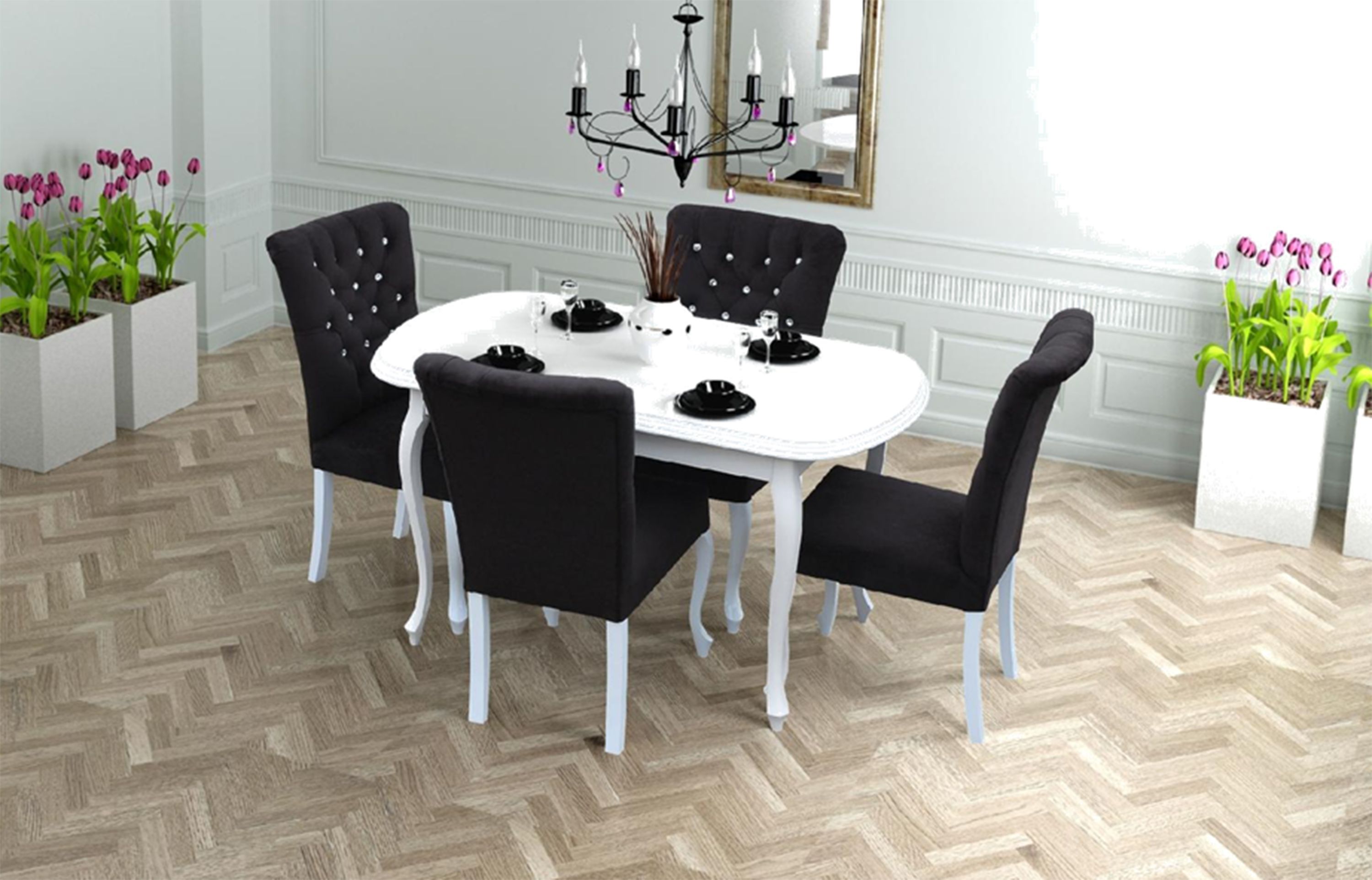 4x Chesterfield Stühle Stuhl Set Polster Garnitur Küchen Wohnzimmer Esszimmer *