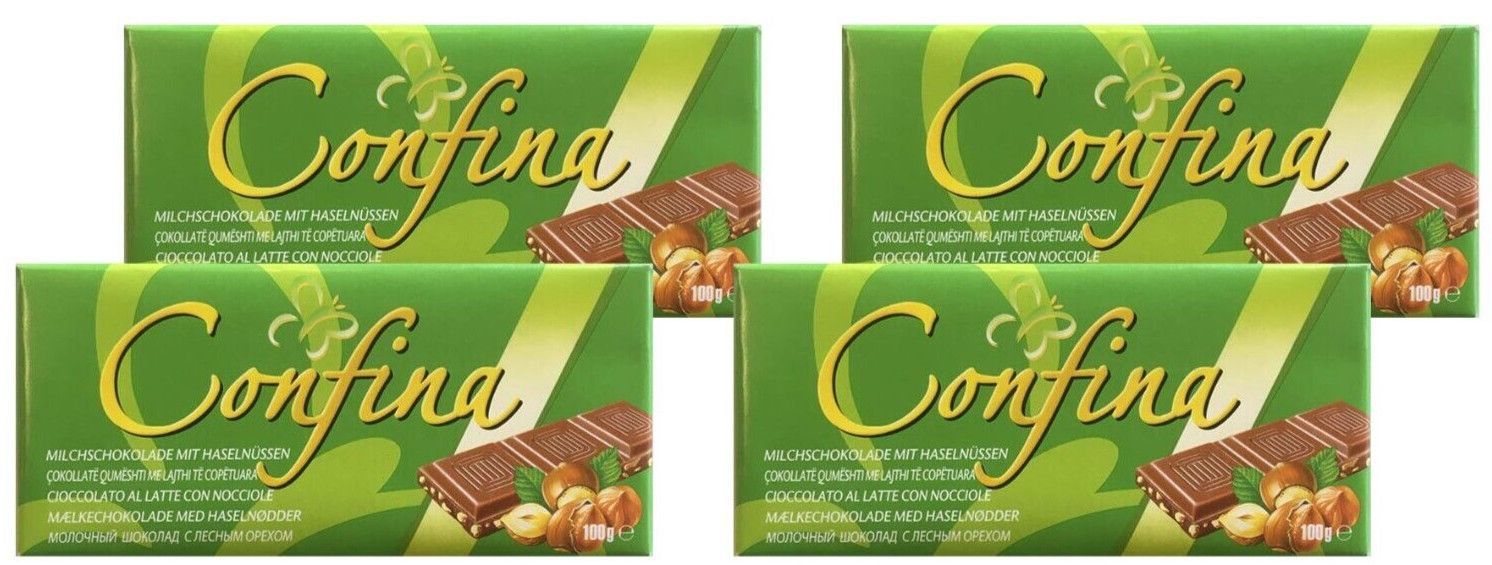 4x Confina Milchschokolade mit Haselnüssen - 100 g Tafel