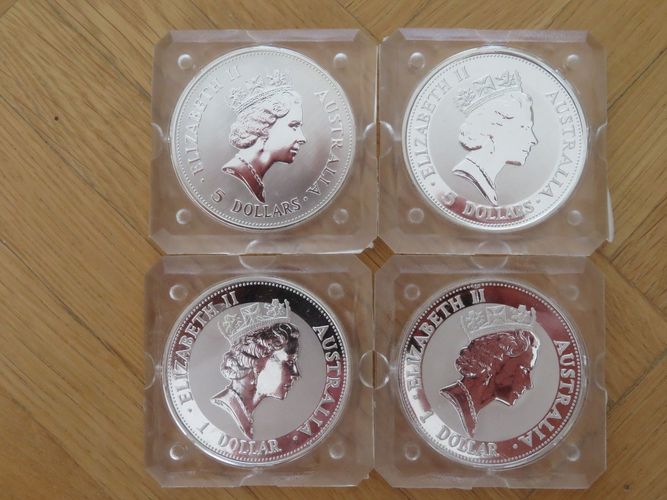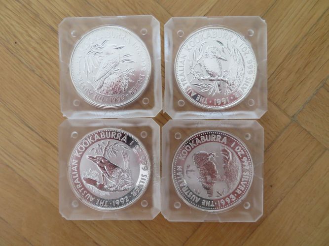 4x Kookaburra Münzen 1990, 1991, 1992 und 1993 4x 1 Unzen Australien