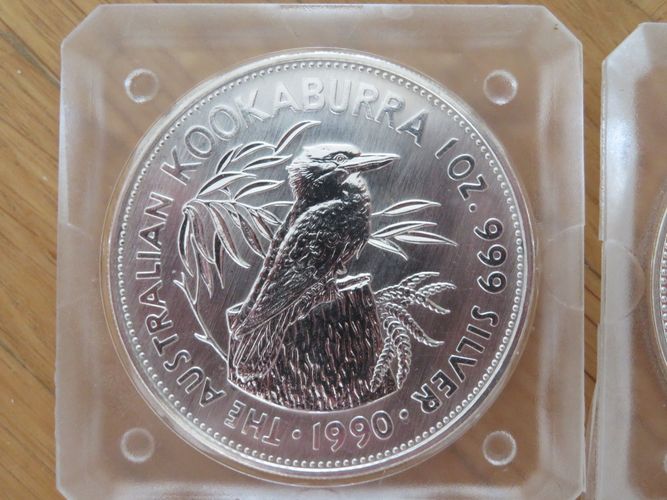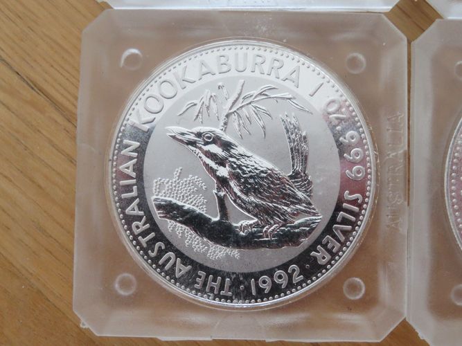4x Kookaburra Münzen 1990, 1991, 1992 und 1993 4x 1Unzen Silber Australien Siehe Originalfotos. (es handelt sich um eine Originalausgabe der Pert Mint ) Achtung: Versand nur 1x die Woche, immer an einem Samstag.