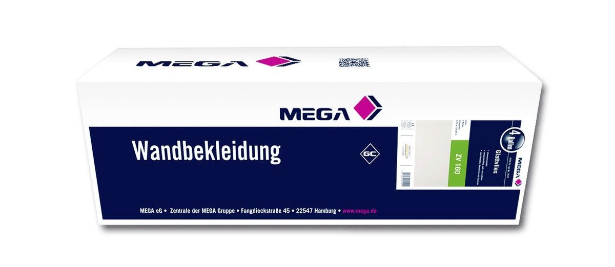 4x MEGA Glattvlies ZV 160 25,00 m x 0,75 m weiß