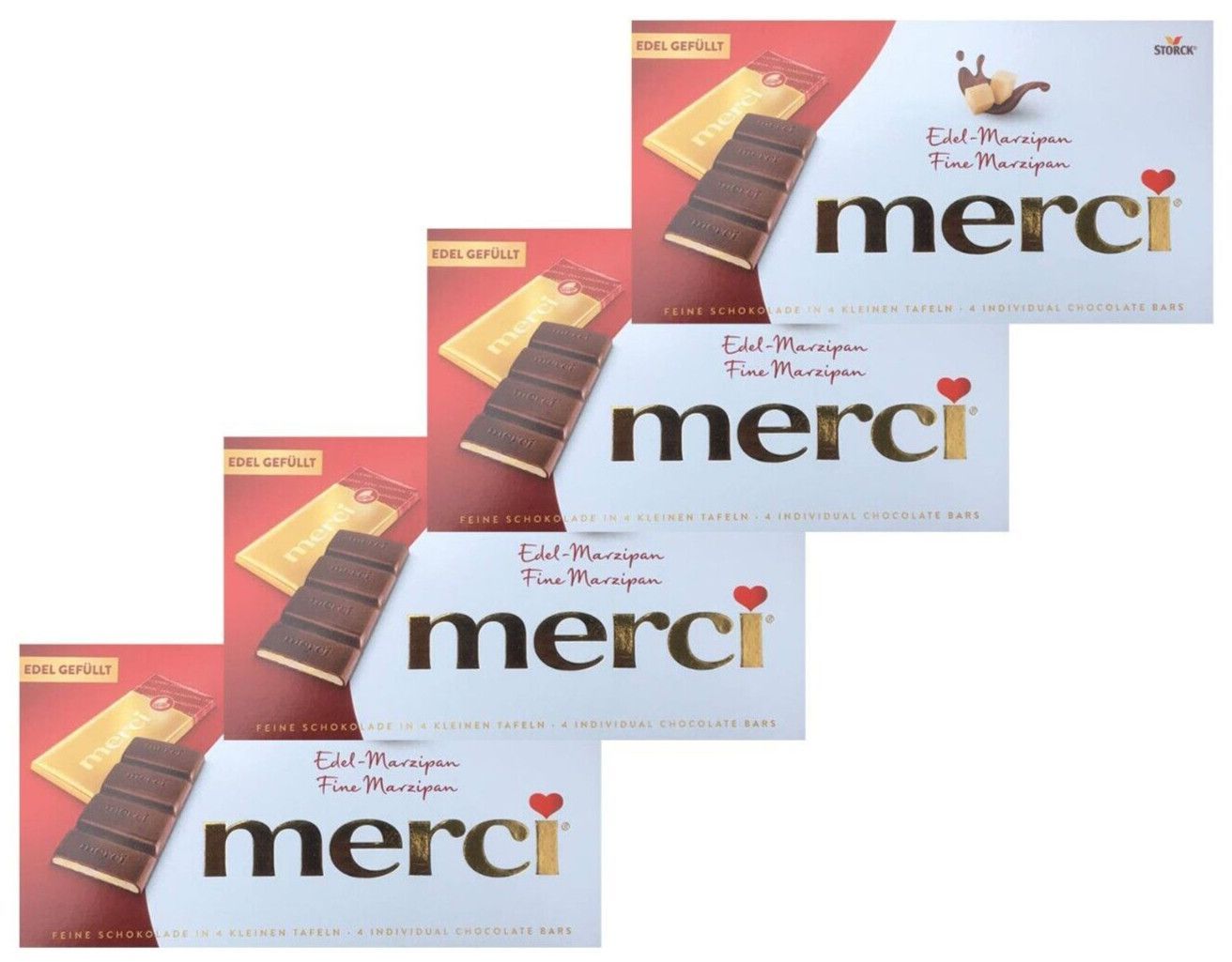 4x merci Edel-Zartbitterschokolade mit Edel-Marzipan Füllung