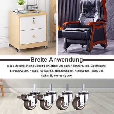 4x Möbelrollen 50mm Lenkrollen M8x15mm mit 2 Bremsen
