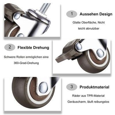 Leise TPR-Räder 360° drehbar bodenschonend stabile Montage