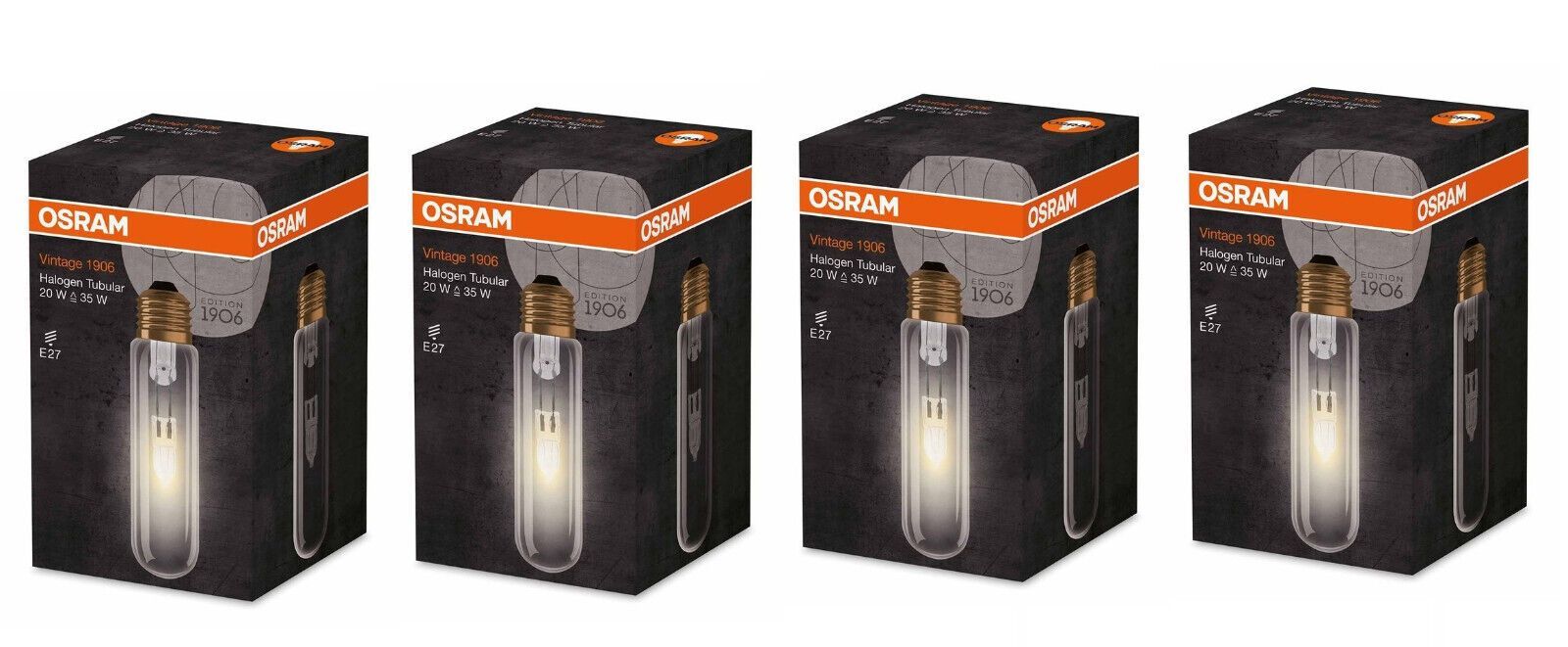 OSRAM 4x Osram Halogen Vintage 1906 Tubular dimmbar E27 20W = 35W EEK: (Spektrum A-G)