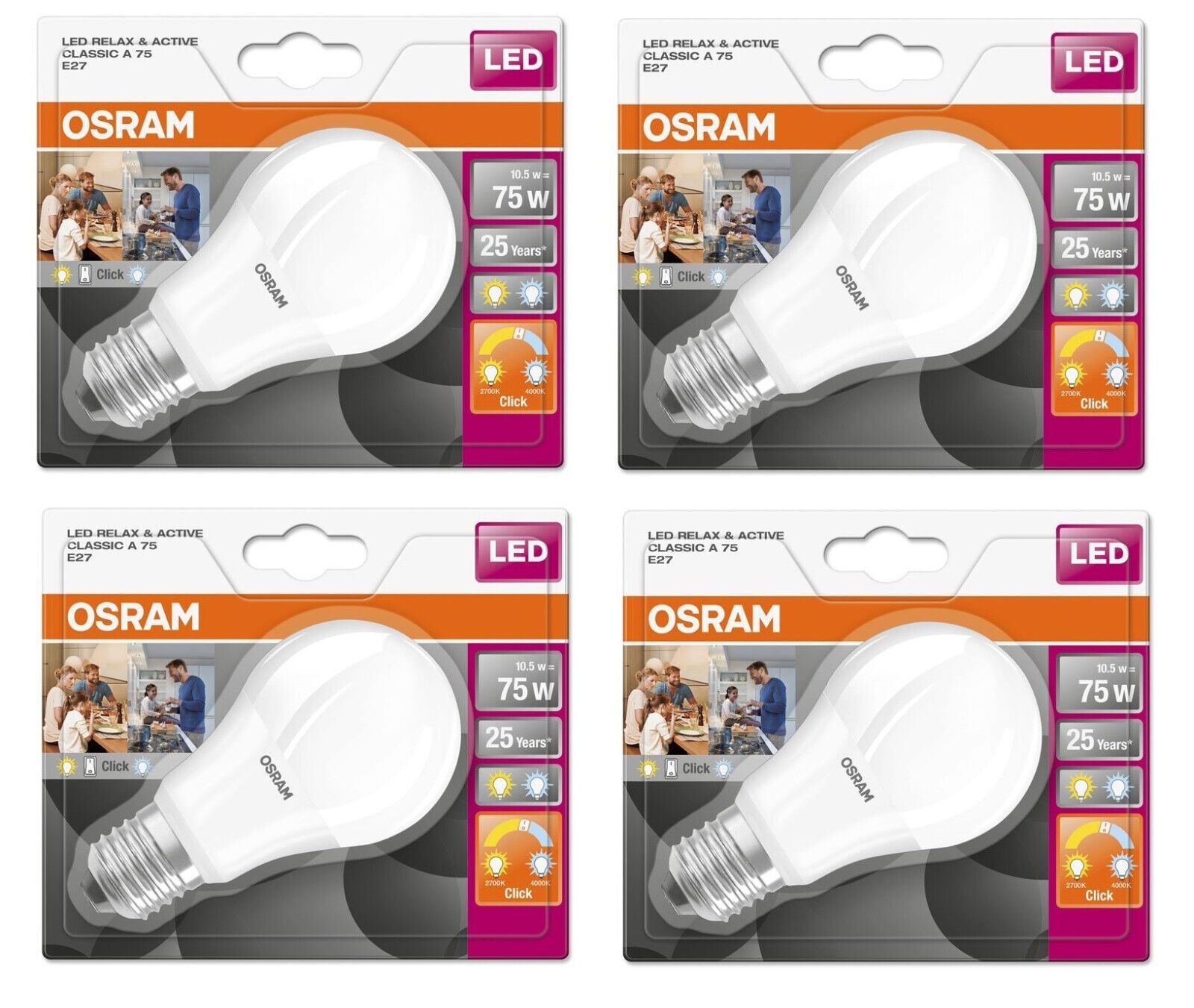 OSRAM 4x Osram LED Relax & Active LED E27 75W kalt / warm Wechsel EEK: (Spektrum A-G)