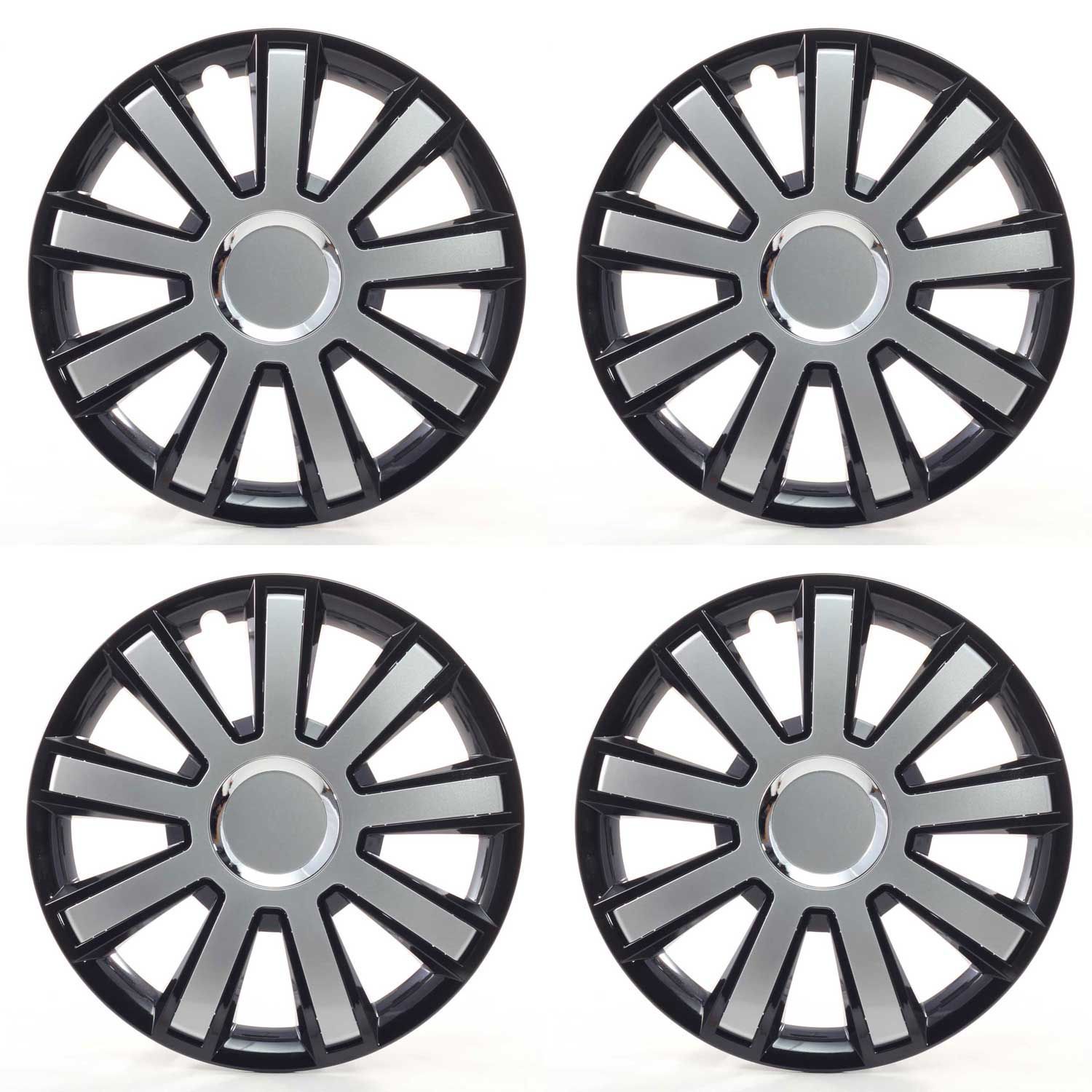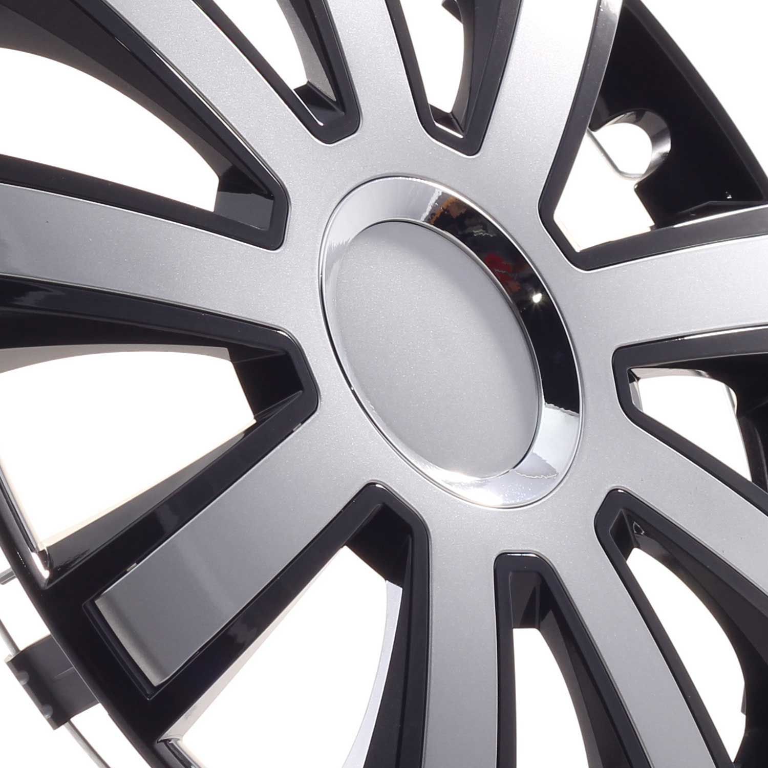 4x Radkappen 14 Zoll Radzierblenden Radblenden Flash Iii Schwarz / Silber Für