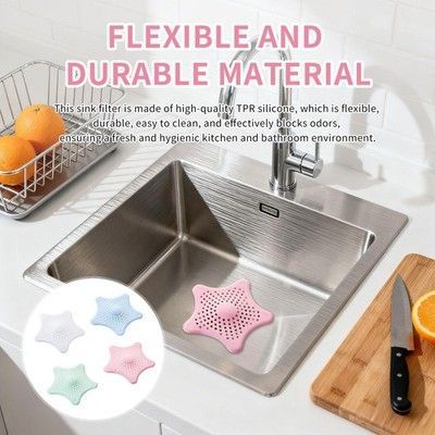 silikon abflusssieb haarfänger dusche sieb badewanne waschbecken saugnäpfe farbmix haar seestern abfluss schmutz verstopfung geruch bad küche badezimmer flexibel saugnapf langlebig reinigen