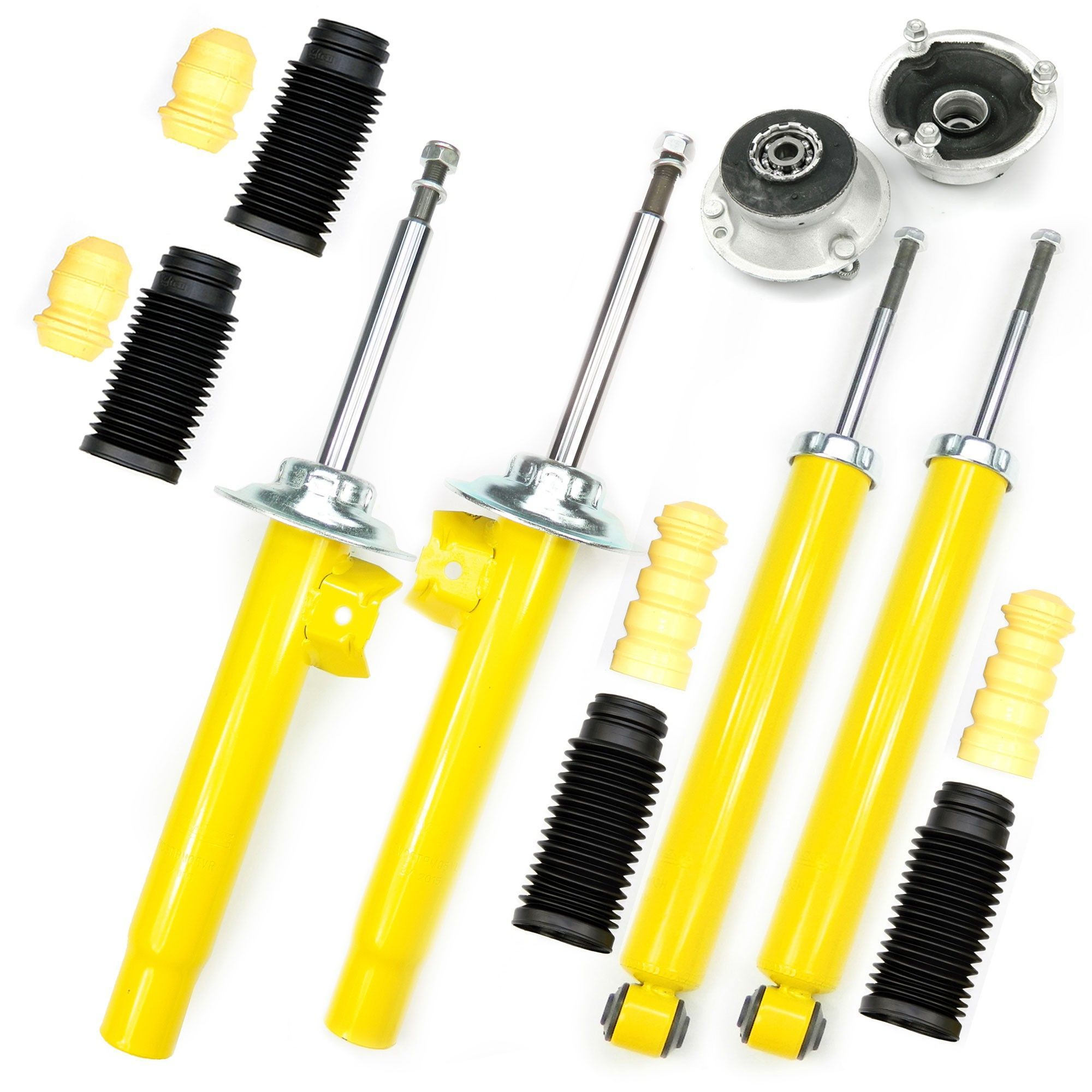 4X SPORT-STOßDÄMPFER Gasdruck VA HA + Domlager VA + Staubkappen FÜR BMW E46