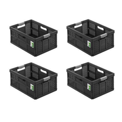 4x Stabile Profi Klappbox 32L PAFEN Einkaufskiste klappbar Soft-Griffe Schwarz