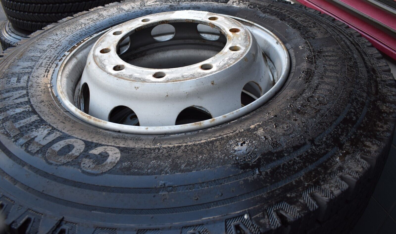 4x Original Mercedes LKW Räder 315 80 22 22.5 Reifen Reifenprofil ist noch Top ca. 20mm+- Continental HDW2 Baujahr 2017