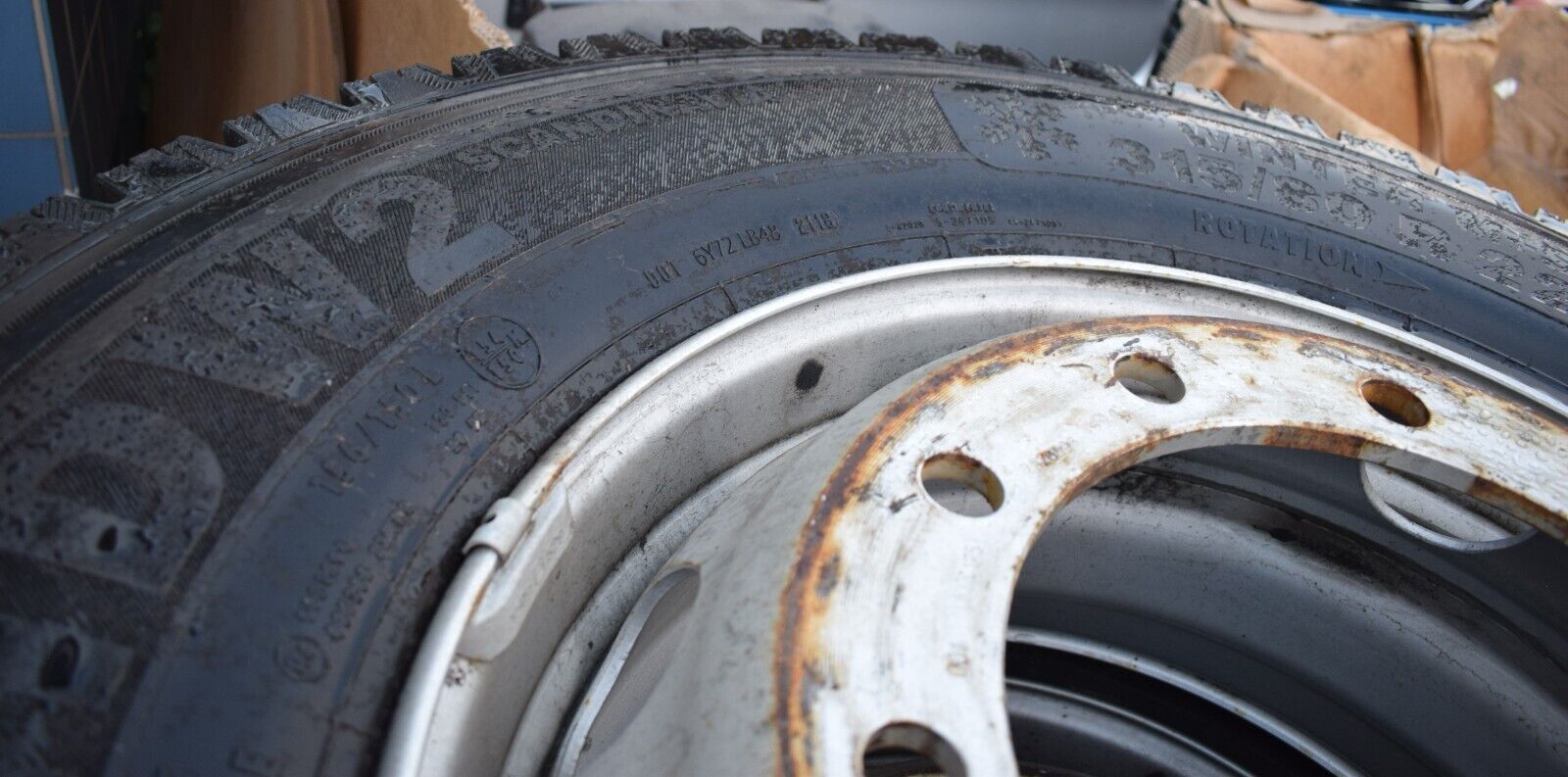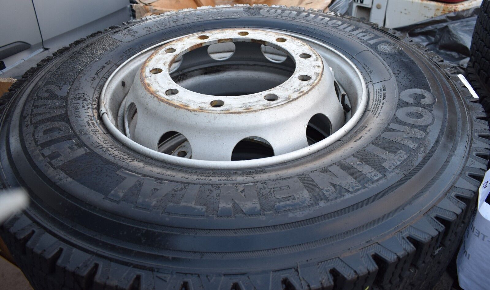 4x Original Mercedes LKW Räder 315 80 22.5 Reifen Profiltiefe siehe Bilder Continental HDW2 Baujahr 2016 Profiltiefe ca. 20mm+-