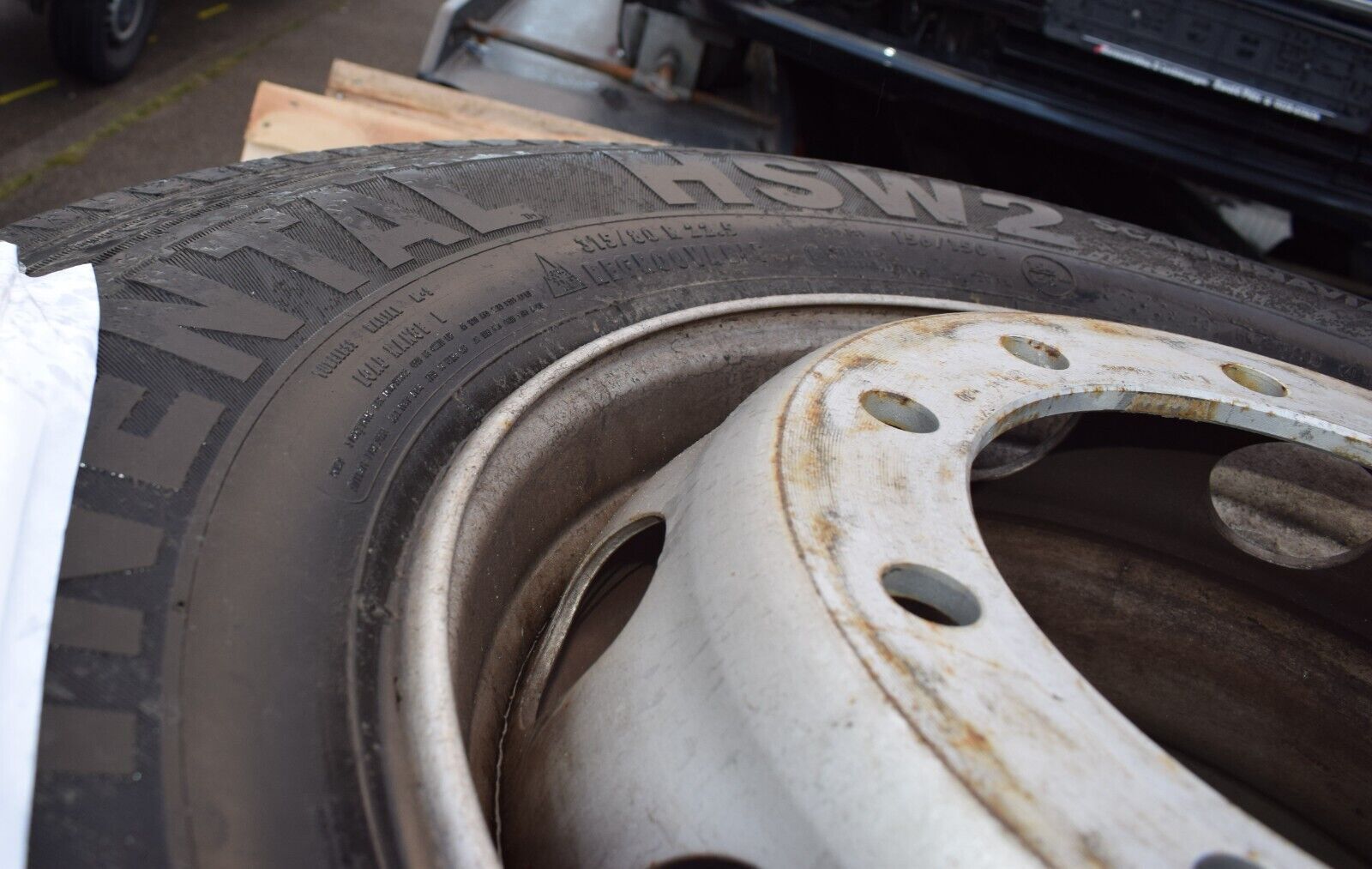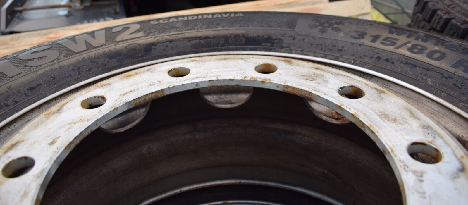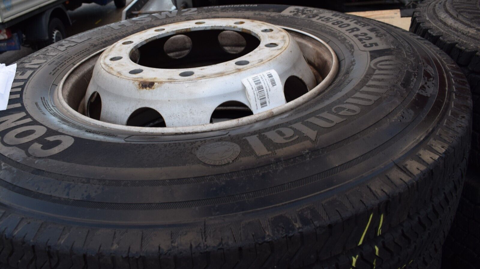 4x Original Mercedes LKW Räder 315 80 22 22.5 Reifen Profiltiefe siehe Bilder Continental HSW2 Baujahr 2018