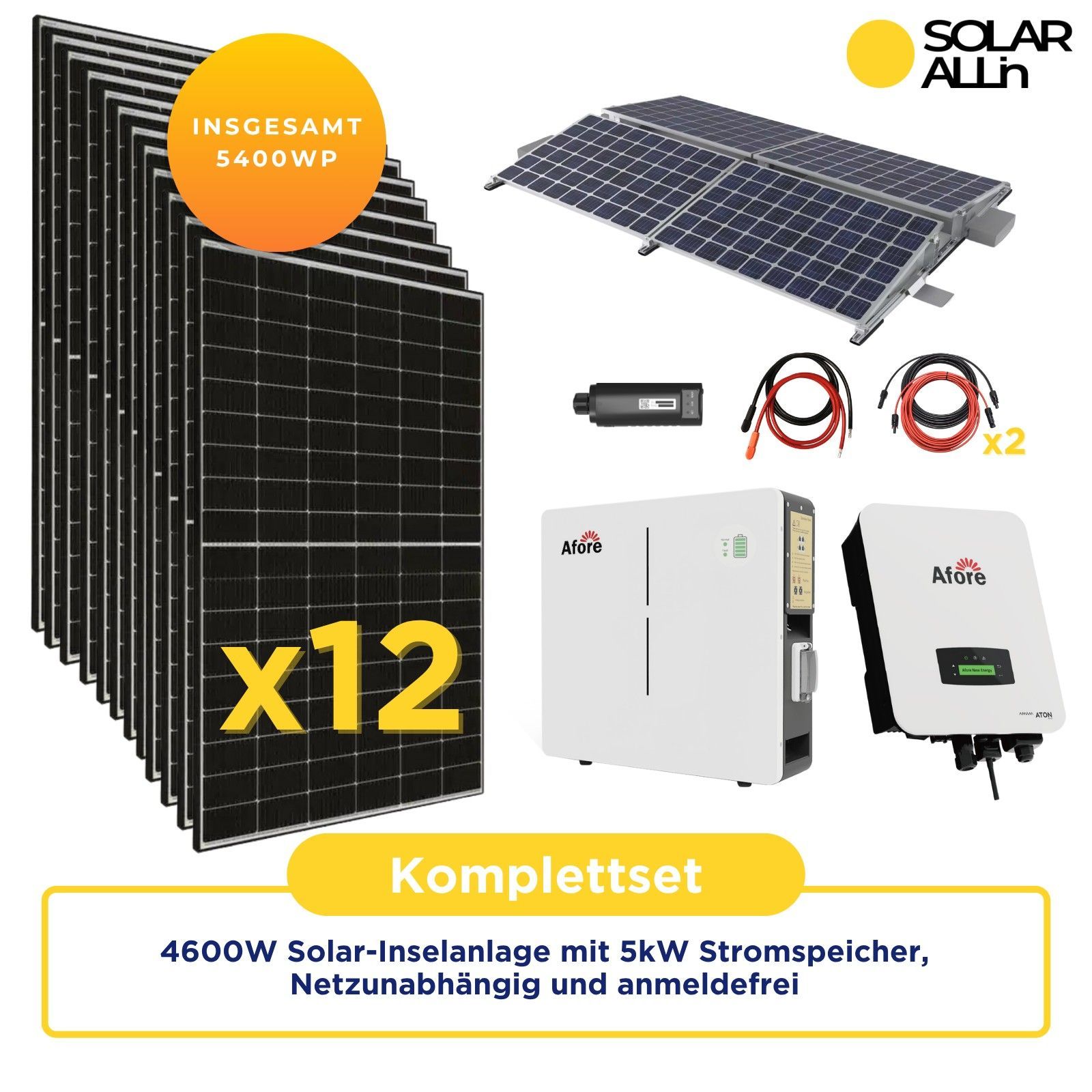 5,4kWp/ 4,6kW Haushalt | Insel PV-Anlage autarkes Komplettset | 5kWh LV-Stromspeicher