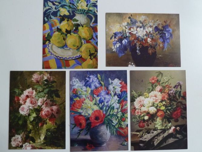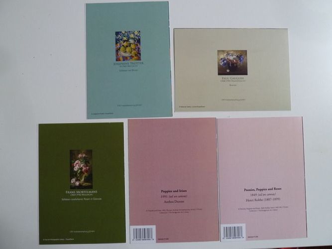 5 AK Kunstkarten Stillleben Blumen Rosen Birnen Paul Gauguin Frans Mortelmans