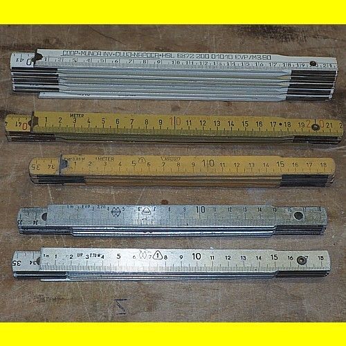 Alle in gebrauchtem Zustand. Interessant ist sicher der 6-gliedrige 1 Meter Howal Zollstock, bei dem das Glied bis ca. 18,8 cm geht. Bei einem Alu Zollstock steht noch Jena, DAMW drauf. Weitere Zollstöcke finden sie in unserem Shop, sie bezahlen nur einmal Versandkosten. Dieses Angebot unterliegt mi