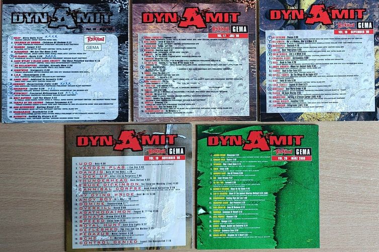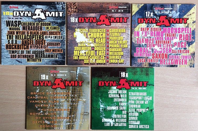 5 CD´s - Rock Hard - Dynamit , Nr. 16 - 20 Beilagen der Zeitschrift Rock Hard. alle im Original-Pappschuber. CDs sind gut , z.Teil starke Gebrauchsspuren an der Hülle