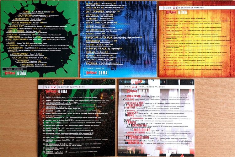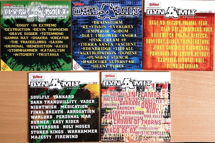 5 CD´s Rock Hard - Dynamit , Nr. 28 , 29 , 31 - 33 Beilagen der Zeitschrift Rock Hard. alle im Original-Pappschuber.
