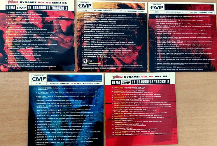 5 CD´s Rock Hard - Dynamit , Nr. 44 - 48 Beilagen der Zeitschrift Rock Hard. alle im Original-Pappschuber.