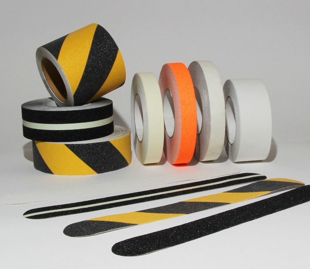 Gewerbliche Anti Rutsch Schutz Streifen für Ihre Treppe. Dieser ist aus einem mit Aluminiumpulver besandeten Kunststoff Material ähnlich eines Schleifpapiers. Dadurch ist er absolut rutschfest und auch im Außenbereich und öligen Arbeitsbereichen sicher zu begehen. Einfach die passende Menge der Anti