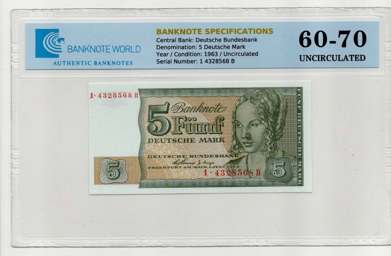 5 Deutsche Mark 1963 BRD Serie 1 B nicht ausgegeben, zertifiziert UNC SELTEN Rosenberg ALT B5 a Rosenberg NEU BRD - 61 a keine Rücknahme und Garantie Versand als Paket, wer anders erwünscht dann mitteilen