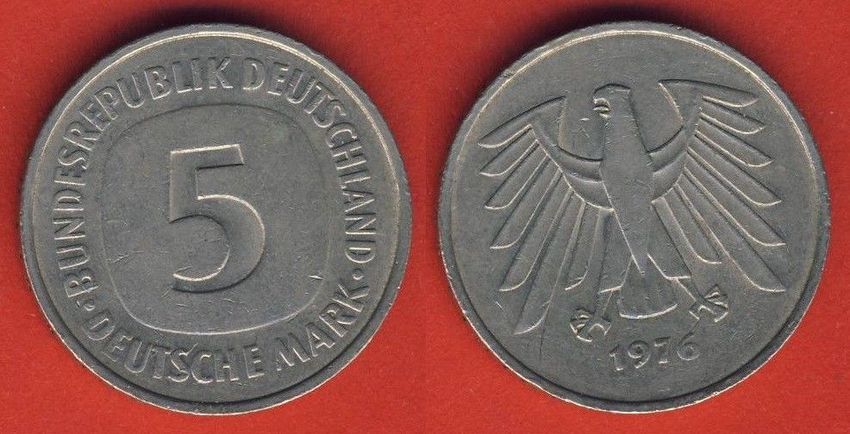 5 DM 1976 Kursmünze Münzzeichen nicht lesbar