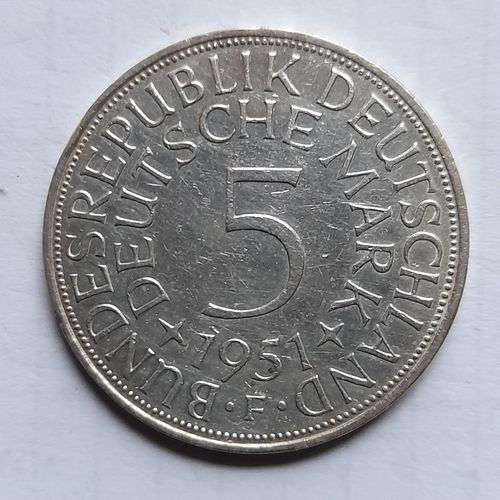 5 DM Münze 1951 F 625/1000 Silber 11,2 Gramm