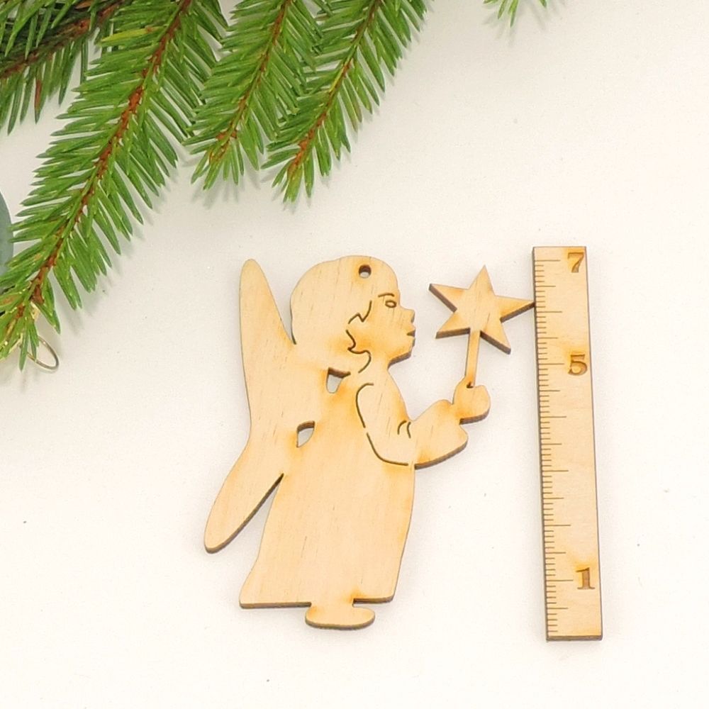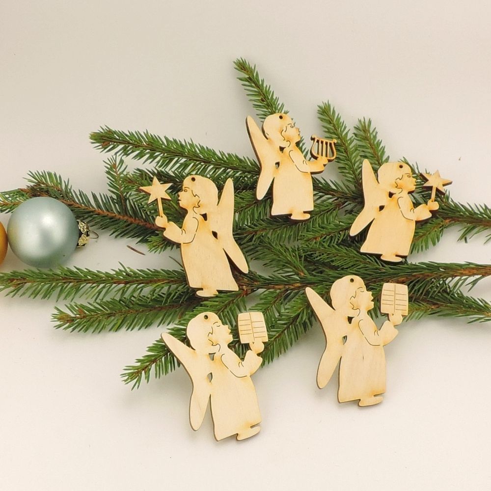 5 Engel mit Loch zum Anhängen Holz 7 cm Weihnachten Advent Baumschmuck Deko