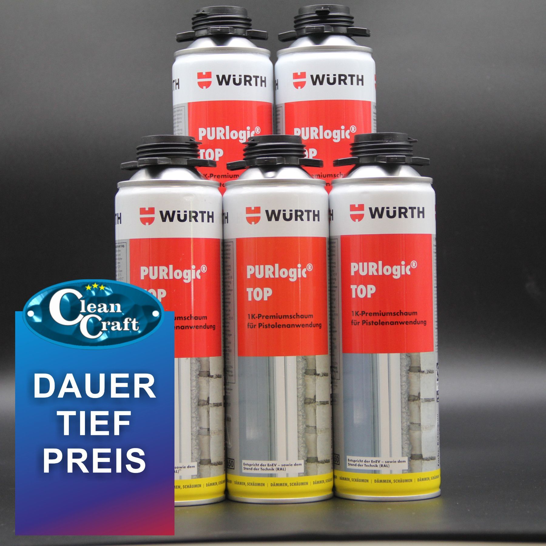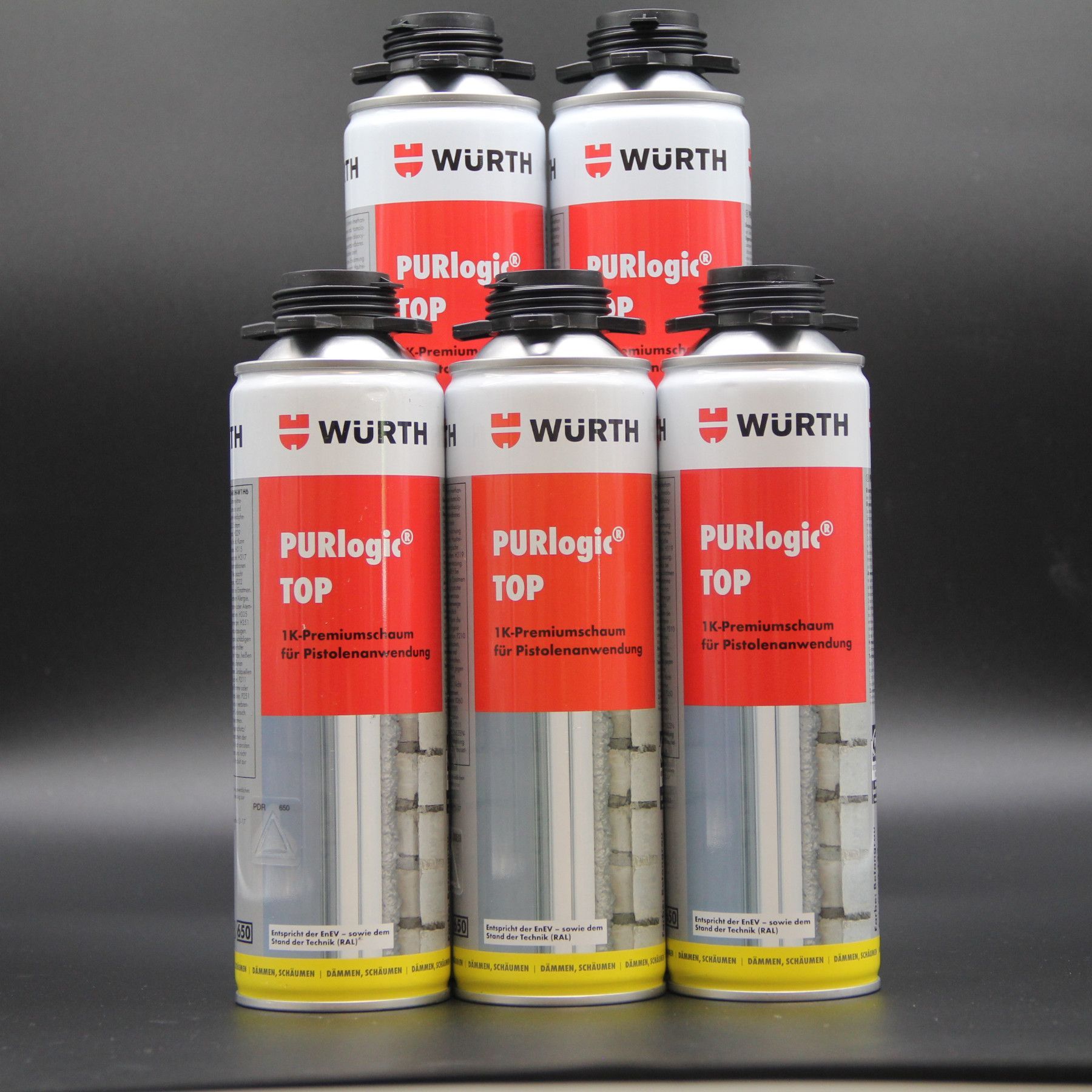 5 er Set - WÜRTH Purlogic TOP 1 K Pistolenschaum Betongrau (Bauschaum, Montageschaum)